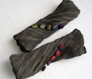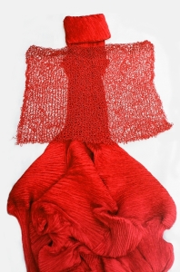 textile Kunst Gold mit Rot Manschetten mit Seidenknöpfen Hier gibt es zarten Strick über der Schulter Tücher / Schals